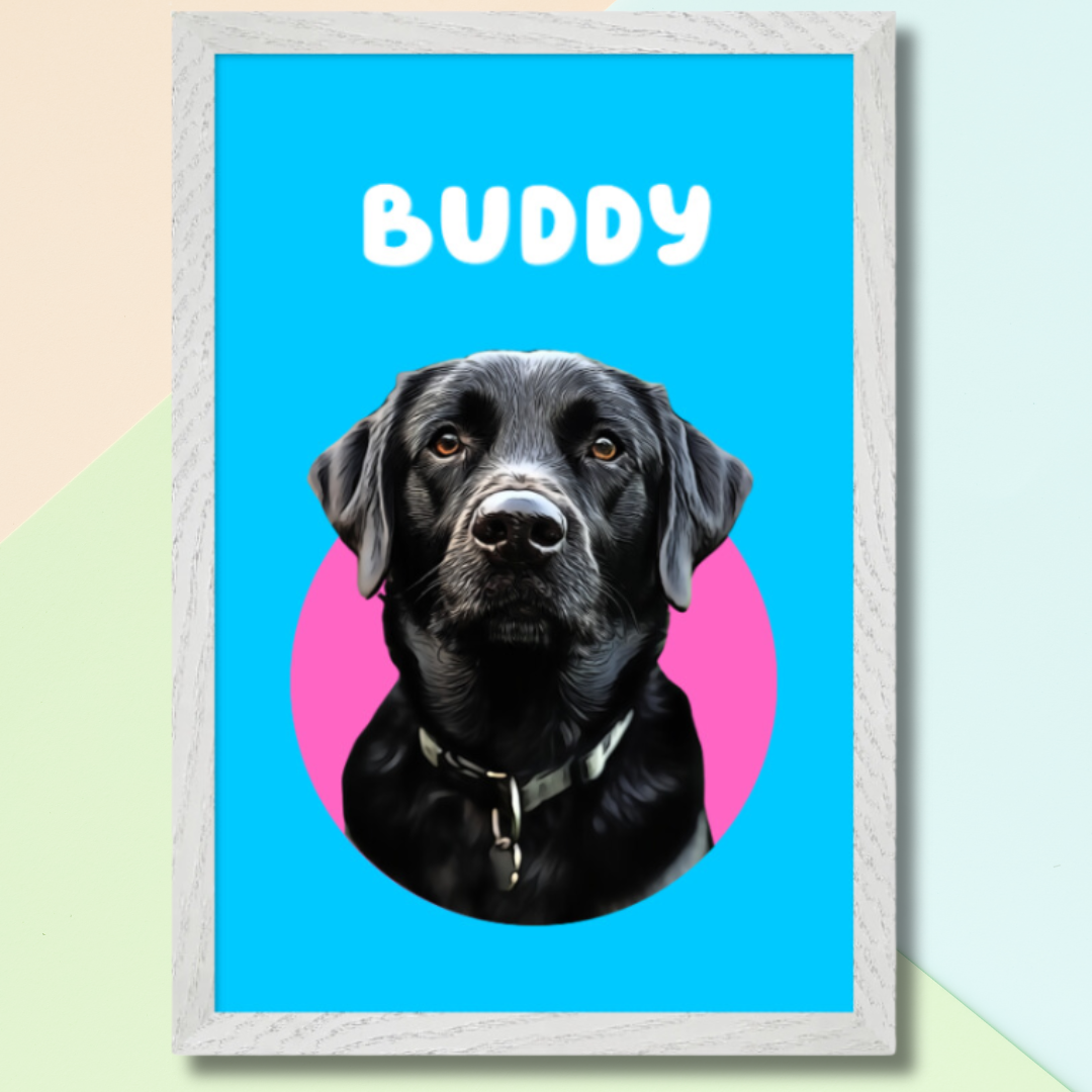 Customised Toon Pop Art Pet Portrait - Ready-to-Hang, Framed Pet Art
