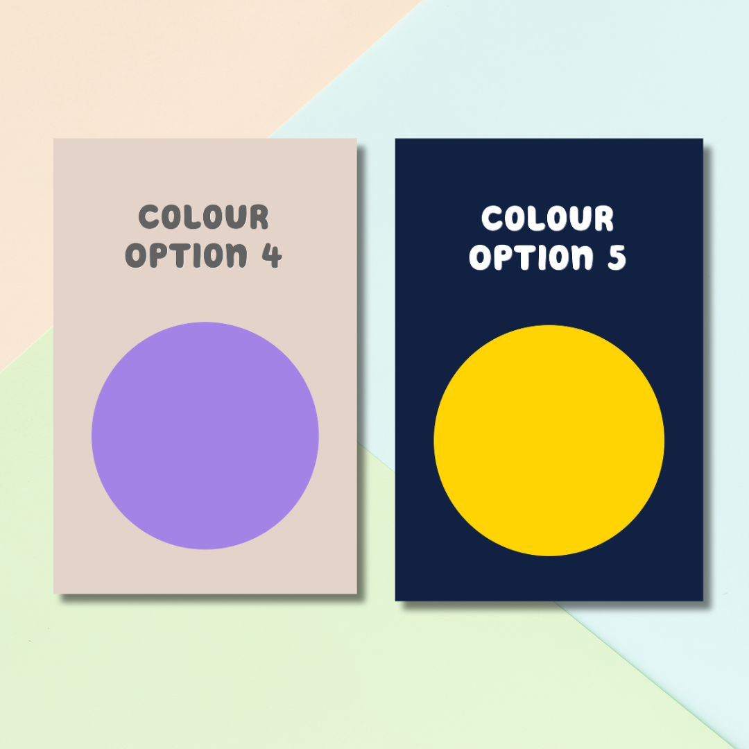 - Customisable: Choose from a variety of 5 unique colour combinations and 4 font styles to create a truly personalized print.