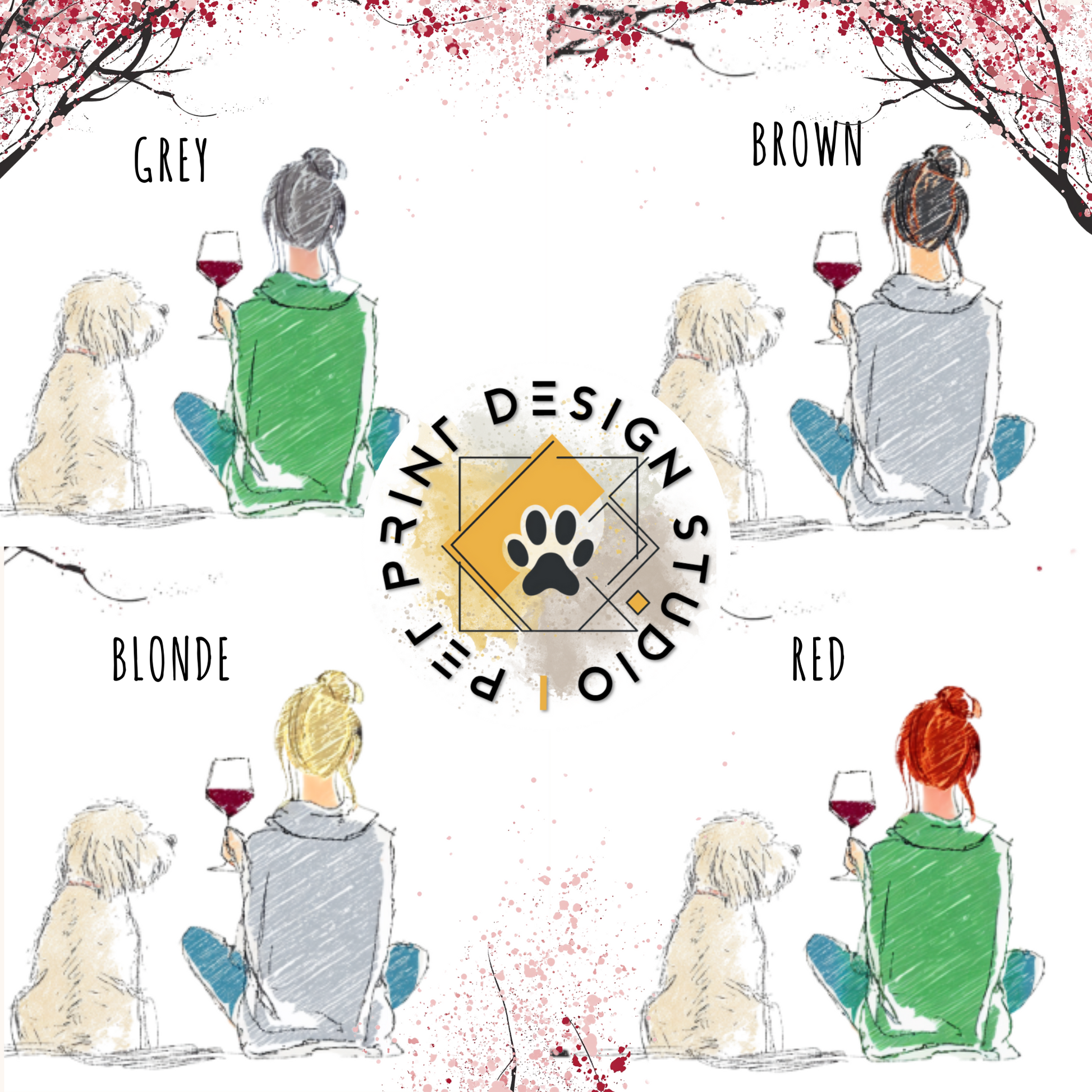 Choose your Pet and Mum Style from our premade options or select custom and tell us the changes you want. Change Dog breed / Dog Colouring / Mum Hair / Mum Sweater Colour / Wine Colour / Mug Text. Dont worry, if you select a custom design, we will send a mock up before printing for you to check with as many alterations as required.